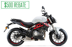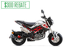 Offer good on all new and unregistered 2022/2023 Benelli TNT135 models. Not all customers will qualify. The finance offer will only be available to credit qualified customers. $300 Rebate good on all new and unregistered 2022/2023 Benelli TNT135 models ONLY. Rebate can only be used for this Benelli TNT135 purchase at the dealership and must be redeemed on the date of purchase. It has no cash value and is not transferable. Example: A total 24-month term with an Amount Financed of $2,900 and 1.99% APR requires monthly payments of $123.35 for 24 months after Rebate. Your actual monthly payment may differ based on financing terms, credit tier qualification, accessories or other factors such as down payment and fees. A 20.42% down payment is required to obtain advertised monthly payment of $123.35. Contact a participating Benelli/SSR dealer for details. Offer expires 03/31/2026.