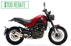 Offer good on all new and unregistered 2022 Benelli Leoncino models. Not all customers will qualify. The finance offer will only be available to credit qualified customers. $700 Rebate good on all new and unregistered 2022 Benelli Leoncino models ONLY. Rebate can only be used for this Benelli Leoncino purchase at the dealership and must be redeemed on the date of purchase. It has no cash value and is not transferable. Example: A total 48-month term with an Amount Financed of $6,400 and 3.99% APR requires monthly payments of $144.48 for 48 months after Rebate. Your actual monthly payment may differ based on financing terms, credit tier qualification, accessories or other factors such as down payment and fees. A 11.74% down payment is required to obtain advertised monthly payment of $144.48. Contact a participating Benelli/SSR dealer for details. Offer expires 03/31/2026.