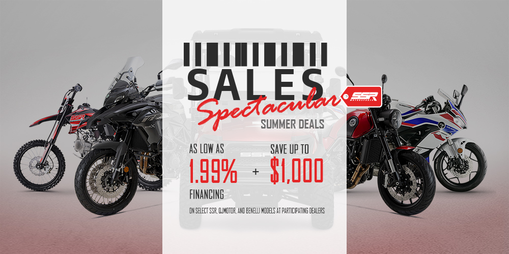Offer good on all new and unregistered 2021/2022 SR125 / SR125Semi / SR125Auto / SR125TR / SR125TR-BW / SR140TR / SR140TR-BW / SR160TR models. Not all customers will qualify. The finance offer will only be available to credit qualified customers. Example: A total 24-month term with an Amount Financed of $1,100 and 4.99% APR requires monthly payments of $48.25 for 24 months. Your actual monthly payment may differ based on financing terms, credit tier qualification, accessories or other factors such as down payment and fees. Depending on the model (and rebate) in your transaction, a specific down payment is required to obtain advertised monthly payment of $48.25. Contact a participating SSR dealer for details. Offer expires 03/31/2026.